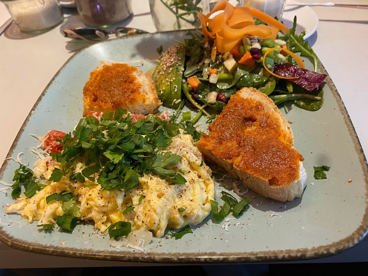 The menu at Napoljonska is an array of culinary delights that cater not only to vegetarians but also to health enthusiasts. Start your day with their exquisite Simply Eggs, where three organic eggs are cooked to perfection and paired with fresh herbs, bread, and butter at just €10.90. If you’re in the mood for something more colorful, try the Scrambled Eggs with Cheese and Tomato. This dish combines creamy tomatoes, tangy parmesan, and smooth avocado, all infused with homemade tomato pesto—a must-try at €13.90. For those seeking a lighter option, the Pink Morning, a fresh juice blend with grapefruit, lemon, ginger, and orange, is a refreshing way to energize your day.